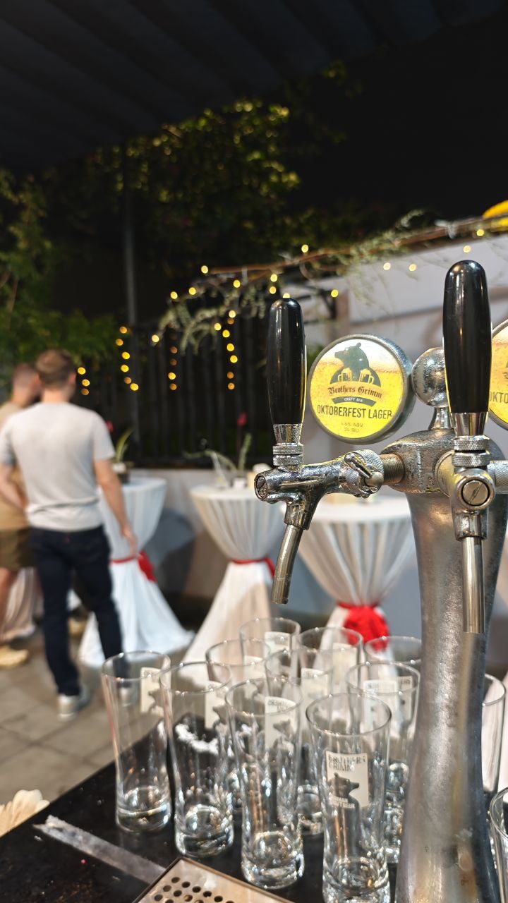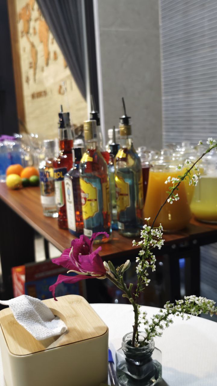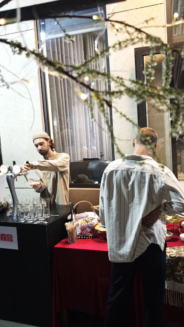 Бар: Коктейли, вино, разливное пиво и другие напитки. Бармен — на месте.